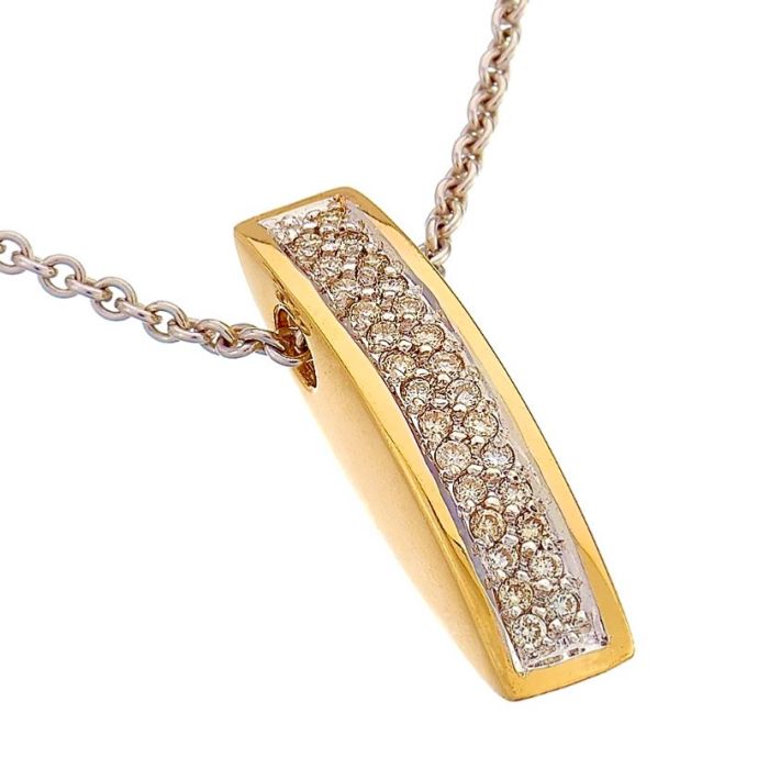 Klassisches Schmuckstück bestehend aus einer weißgoldenen Kette mit einem traumhaften Anhänger in Gelbgold, der rechteckig, aber dennoch konisch gearbeitet ist.