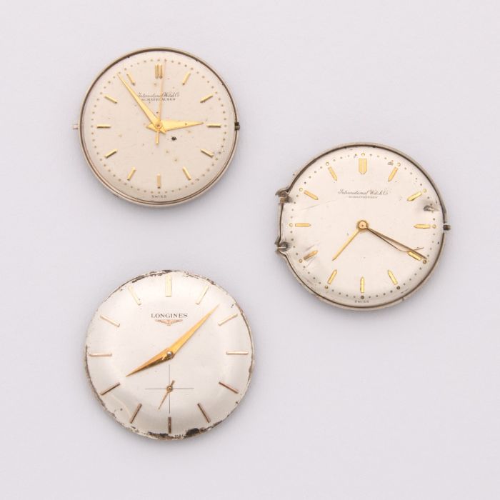 3 mechanische Uhrwerke für Herrenuhren von LONGINES und IWC aus 1953, 1962 und 1966