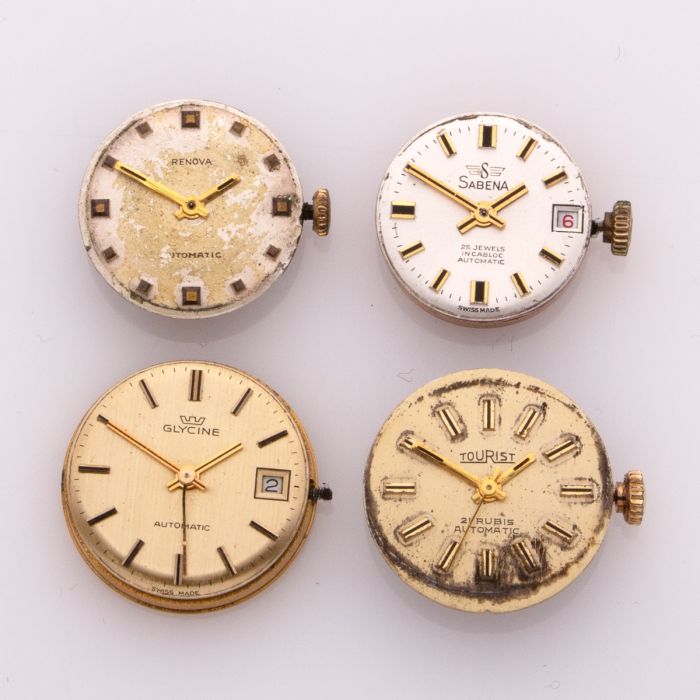 4 Automatik-Uhrwerke für Damenuhren um 1965-72 und 1971-80