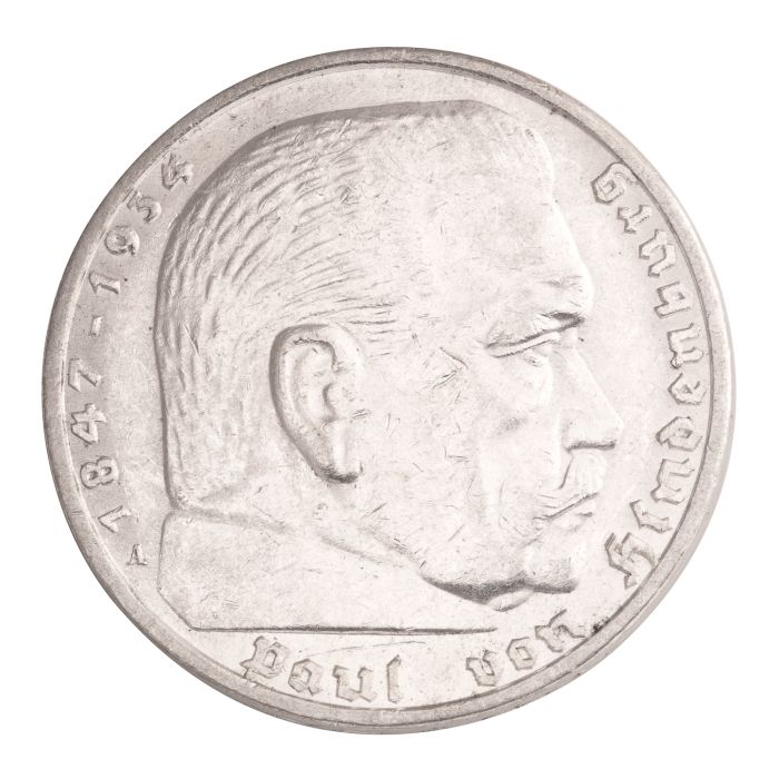 Die 5 Reichsmark Kursmünze aus Deutschland wurde von 1936 bis 1939 gefertigt. Von 1933 bis 1939 wurden 6 Versionen dieser Münze geprägt.