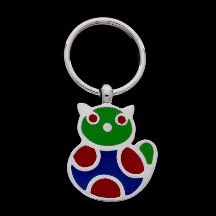 Niedlicher, farbenfroher Katzen- Schlüsselanhänger in 925er Silber