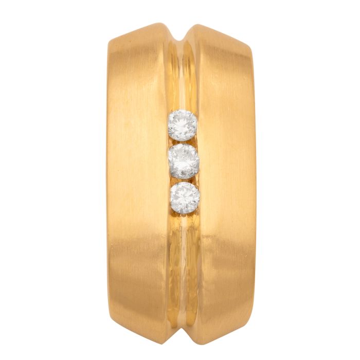 Die Schauseite des Schmuckstückes ist mattiert, die Seiten in poliertem Gelbgold.