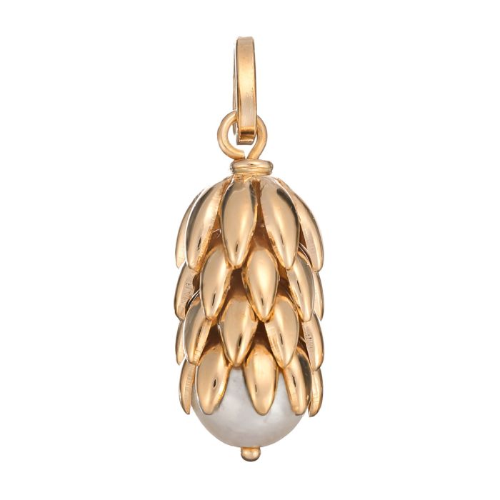 Ungewöhnlicher Anhänger aus Italien, nach einer Vorlage nach 1968, in Form einer Bananenstaude mit einer Perle als unteren Abschluss.