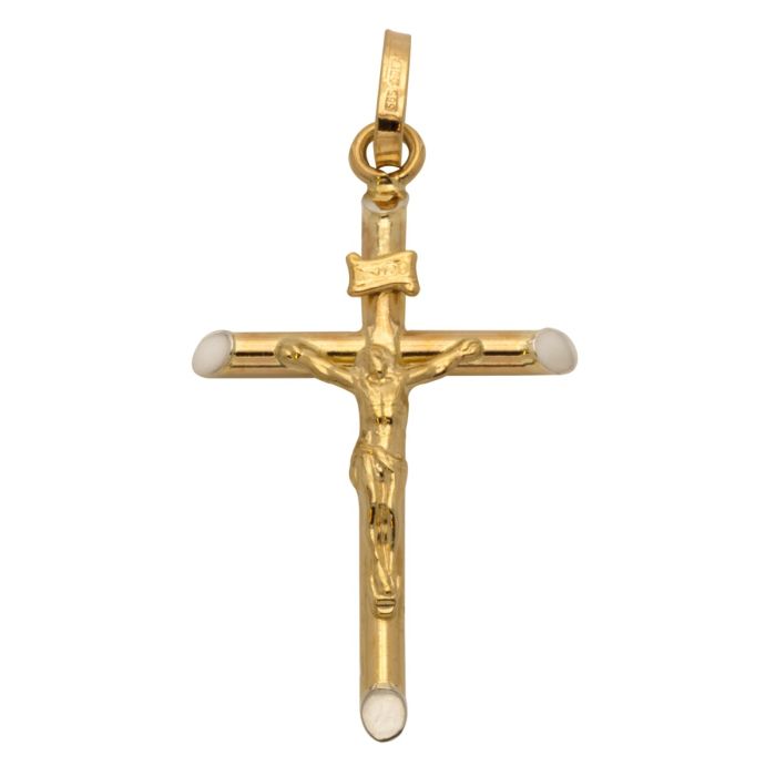 Anhänger in Form eines Kreuzes in 14-karätigem Gelbgold.