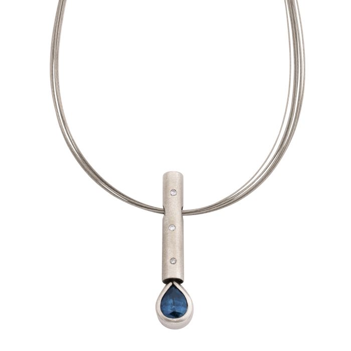 Anhänger in Graugold mit Saphir u. Brillanten inkl. Edelstahlcollierkette