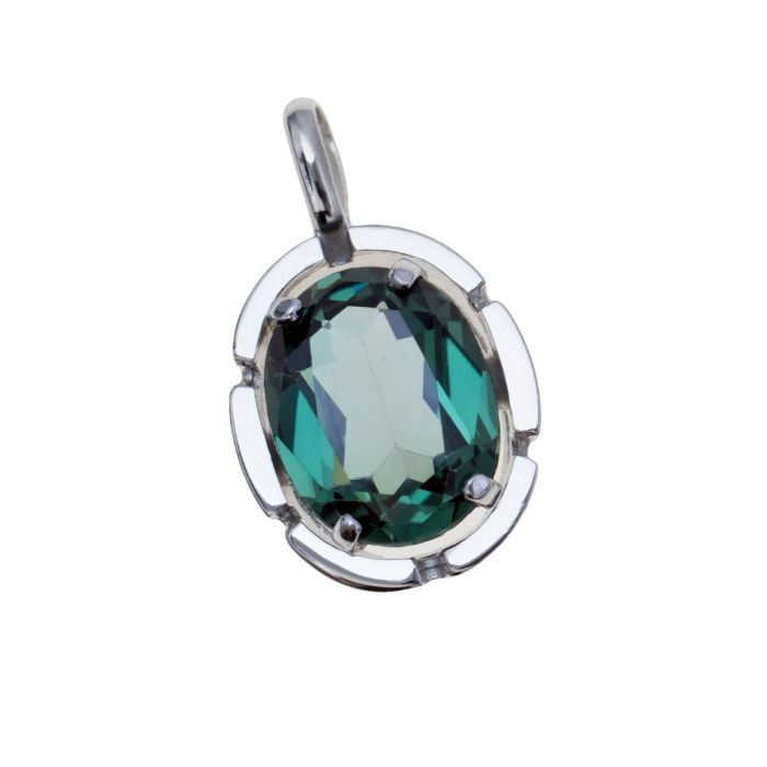 Anhänger mit synthetischem grünem Spinell in Ovalschliff in Chatonfassung mit fester Öse.