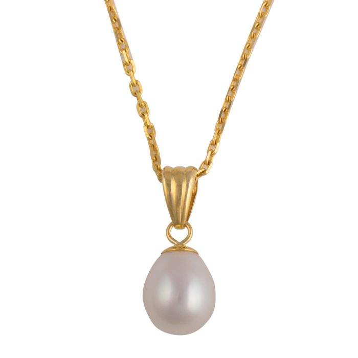 Der Anhänger hat ebenfalls diese Legierung. Er ist schlicht gehalten mit einer schönen, ovalen Zuchtperle mit hellem Lüster.