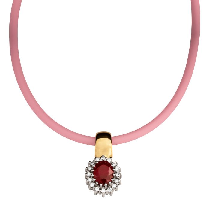 Anmutiger Clipanhänger mit Brillanten und rubin-roséfarbene Silikonkette
