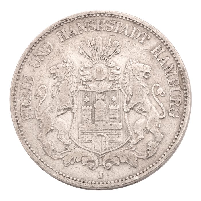 Antike Silbermünze – 5 Mark – Deutsches Reich – Hamburg – 1876