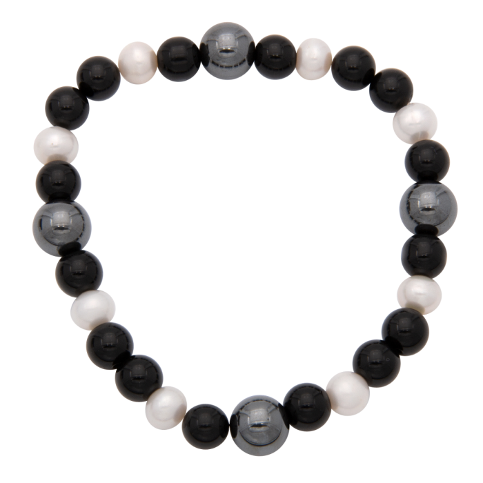 Armband mit Zuchtperlen, Onyx Kugeln und Hämatit