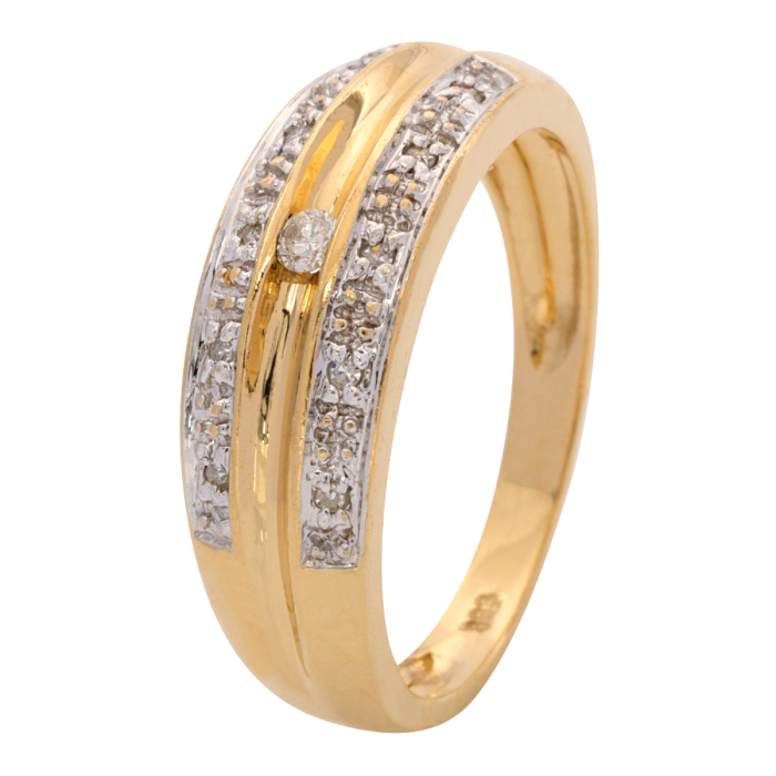 Das Schmuckstück hat eine Ringschiene, welche sich im Verlauf verbreitert.