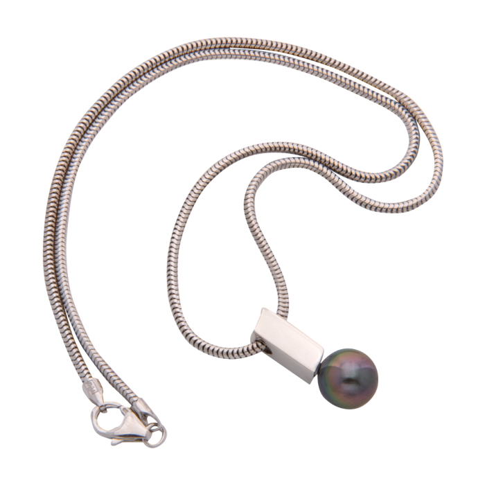 Attraktiver Platinanhänger mit dunkler Perle – inklusive Schlangenkette