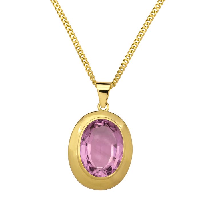 Das Schmuckstück fasst einen großen leuchtenden Amethyst von ca. 30ct.