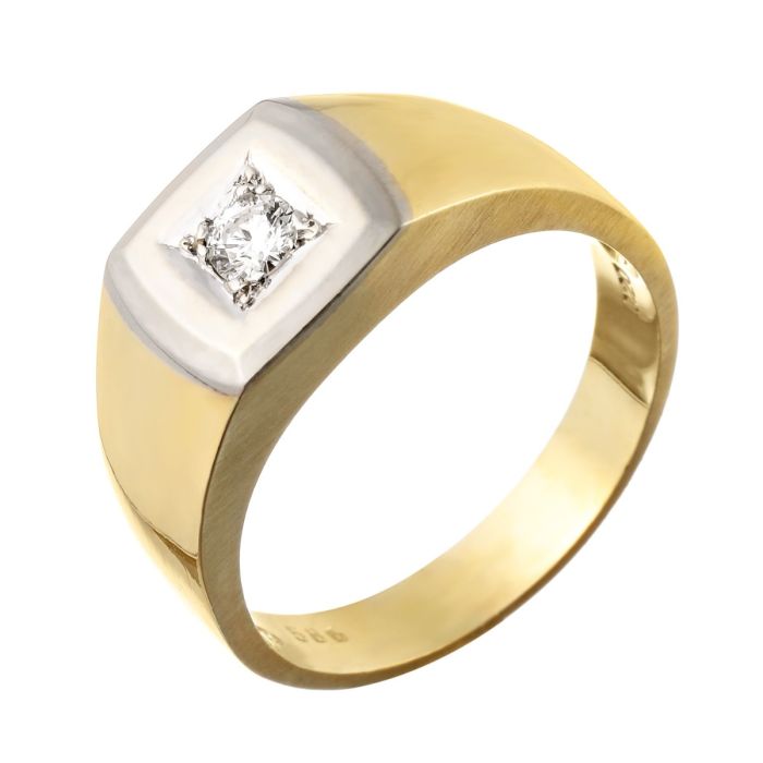 Auffälliger Herrenring mit einem Brillanten von 0,20 ct in einer eckigen Fassung mittig des Ringes gefasst.