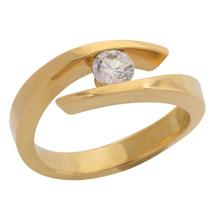 In der leicht geschwungenen Schiene sitzt ein funkelnder Zirkonia.