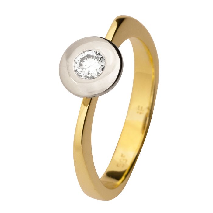 Der Brillant von 0,20 ct. in weißgoldener Zargenfassung ist dennoch das Highlight des Ringes.