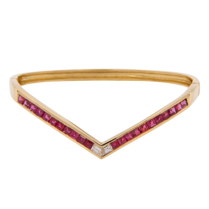 Außergewöhnlicher Armreif in 750er Gelbgold mit Rubinen und Diamanten