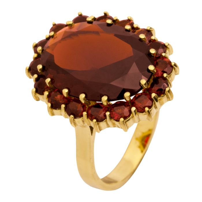 Beeindruckender Granatring in 8 karätigem Gelbgold.