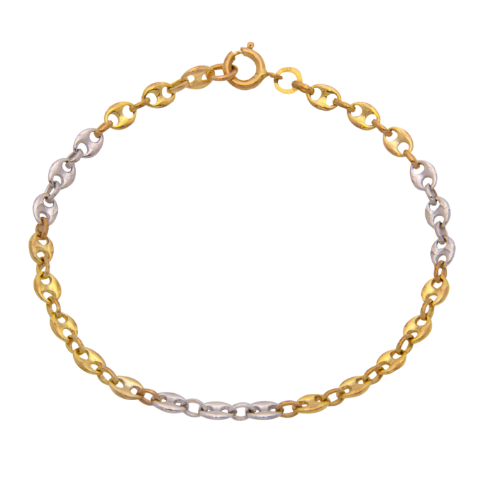 Edel und schlicht und dabei trotzdem etwas ganz Besonderes ist das Bicolour Armband mit seiner Marinakettengliederung.