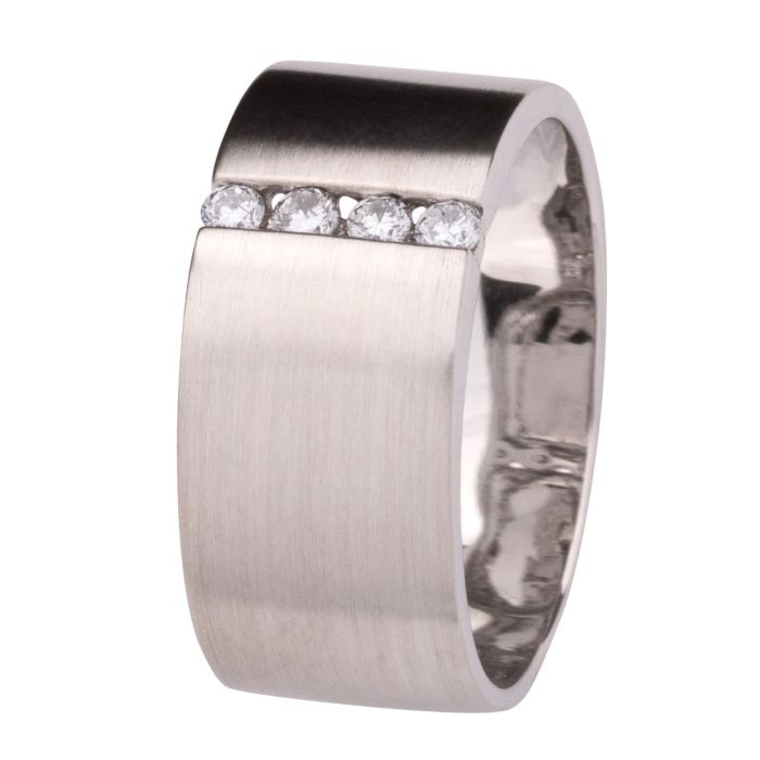 Damenring mit breiter Ringschiene in 14-karätigem Weißgold.