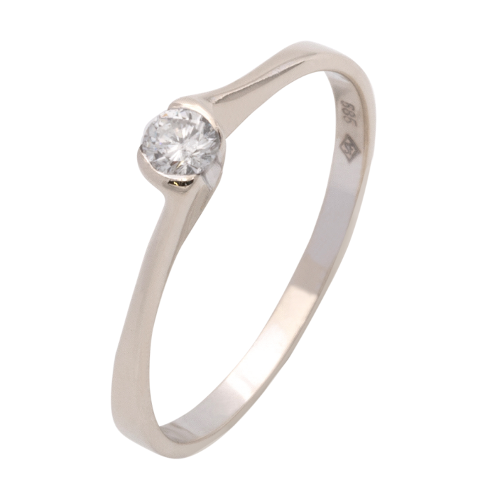 Mittig funkelt ein Brillant von 0,15 ct in einer Art Spannfassung, welche seitlich offen ist.