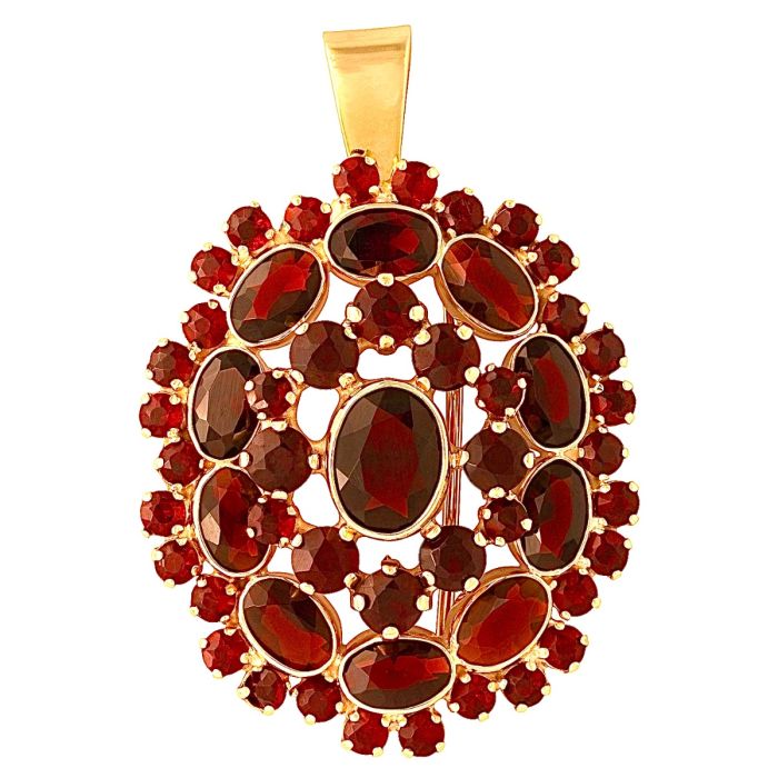 Brosche/Anhänger in 333er Gold mit Granatsteinen