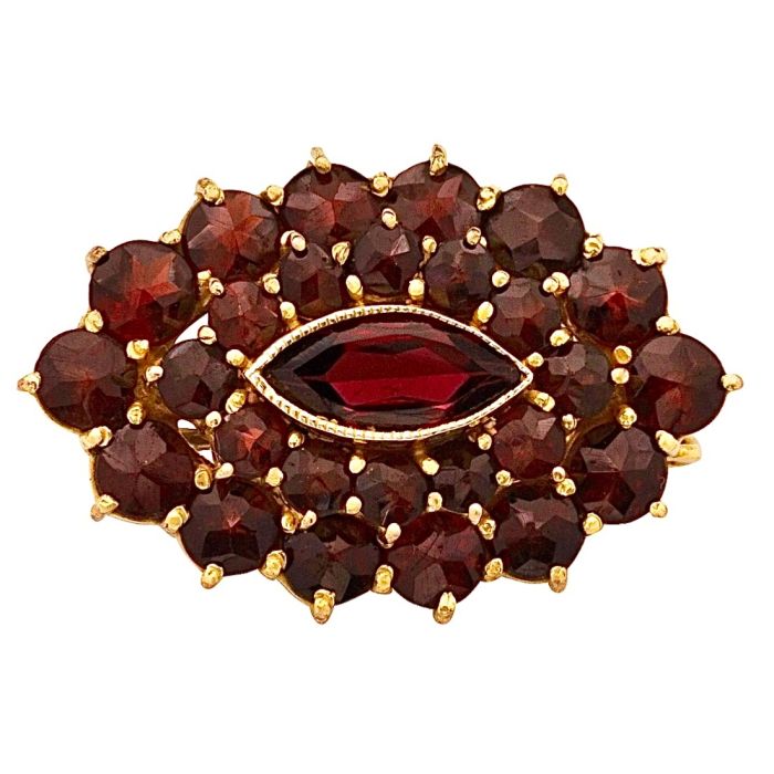 Brosche Doublé mit 27 Granatsteinen