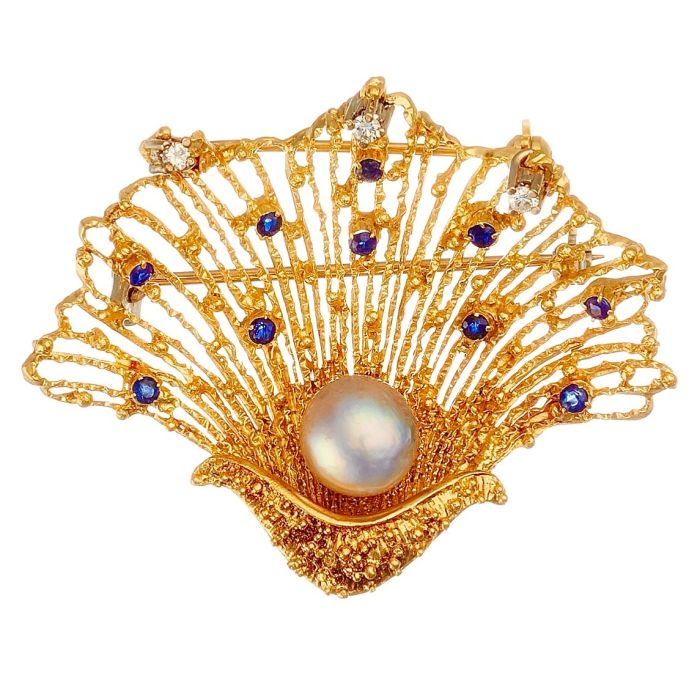 Eine große Zuchtperle im unteren, mittleren Teil ziert ebenfalls diese schöne Brosche.