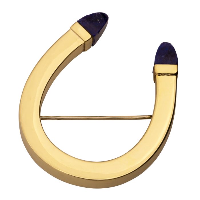 Geradlinige Brosche in Form eines Hufeisens in 14-karätigem Gelbgold.