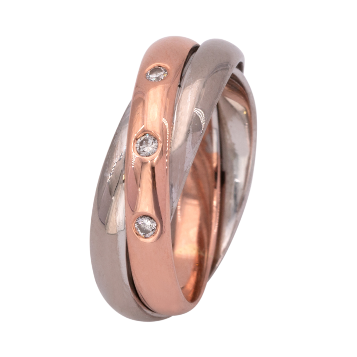 Schauseitig funkeln 3 Brillanten auf der Roségoldenen Schiene.