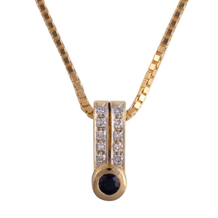 Clipanhänger mit Saphir und Diamanten mit Venezianerkette