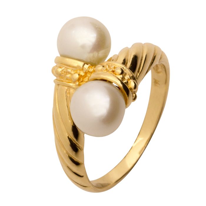 Damenring in 585er Gold mit 2 Zuchtperlen