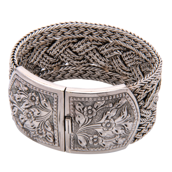 Das exklusive Schmuckstück hat ein geflochtenes Dekor.