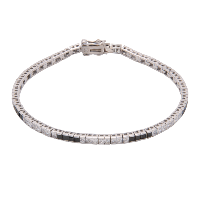 Funkelndes Silberarmband mit Zirkonia und schwarzen Schmucksteinen