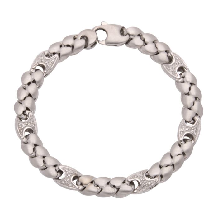 Das Damenarmband, in 14 karätigem Weißgold, hat exklusive phantasievolle Glieder.