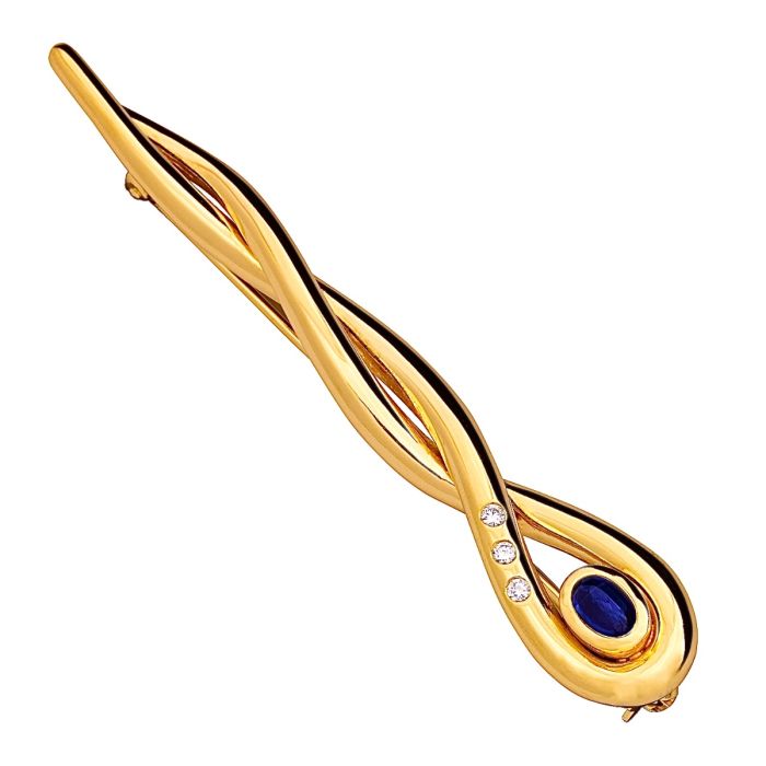 Luxuriöse Stabbrosche mit Saphir und 3 Brillanten