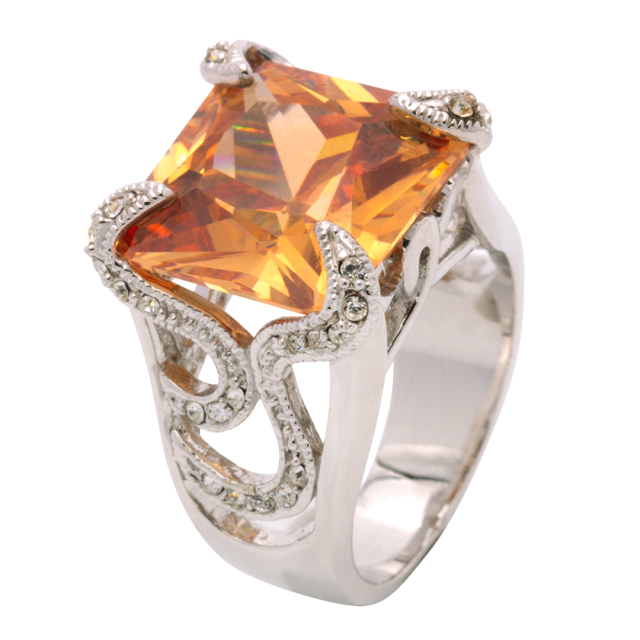 925er Sterlingsilber trifft auf einen orangen Farbstein und Zirkonia.