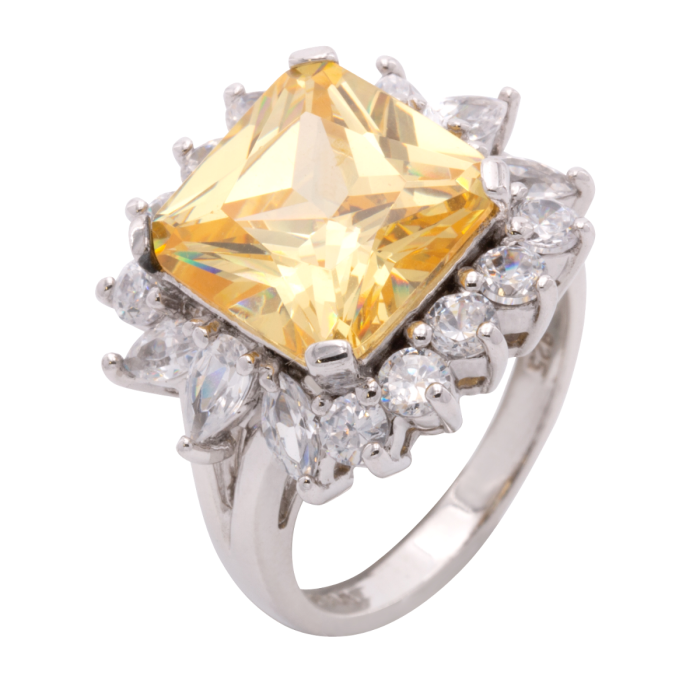 Dank funkelnder Zirkonia und dem großen gelben Farbstein mittig wird das Licht gekonnt reflektiert.
