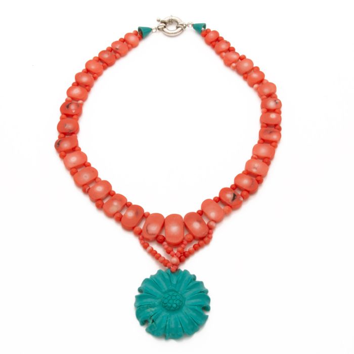 Eine Päonienblüte als Anhänger ziert dieses farbenfrohe Schmuckstück. Ungewöhnliches Design für ungewöhnliche Modeansprüche.