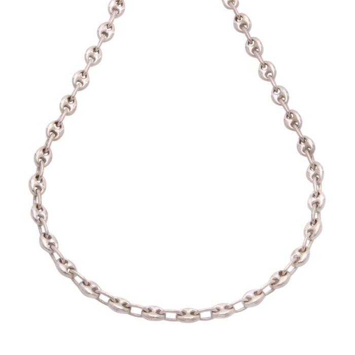 Massive Damenkette in Sterlingsilber mit einer Schiffsankergliederung. Als Zwischenglieder dienen schlichte ovale Glieder.