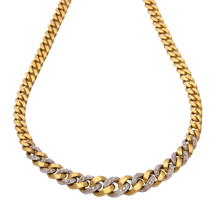 Die Glieder vergrößern sich zur Mitte hin im Verlauf. Die mittleren Glieder fassen je 4 Diamanten in unterschiedlichen Größen.