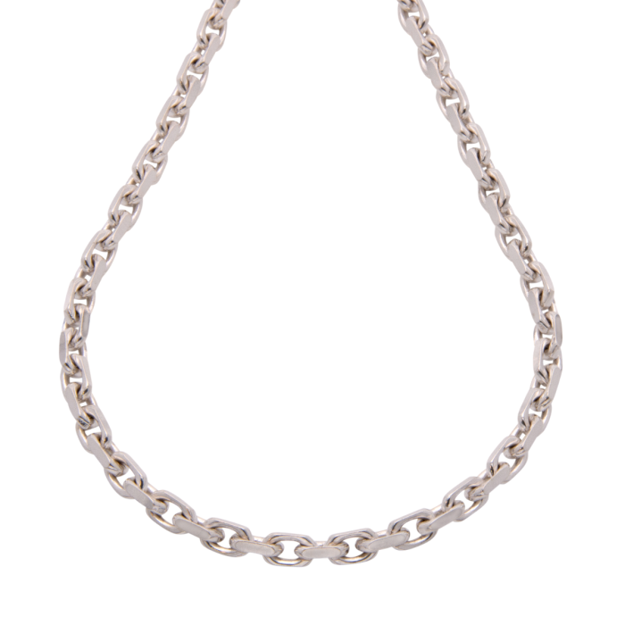 Durch die grobe, kantige Ankergliederung und seine hochglänzende Oberflächenveredlung ist die Kette auch ohne Anhänger ein Hingucker.