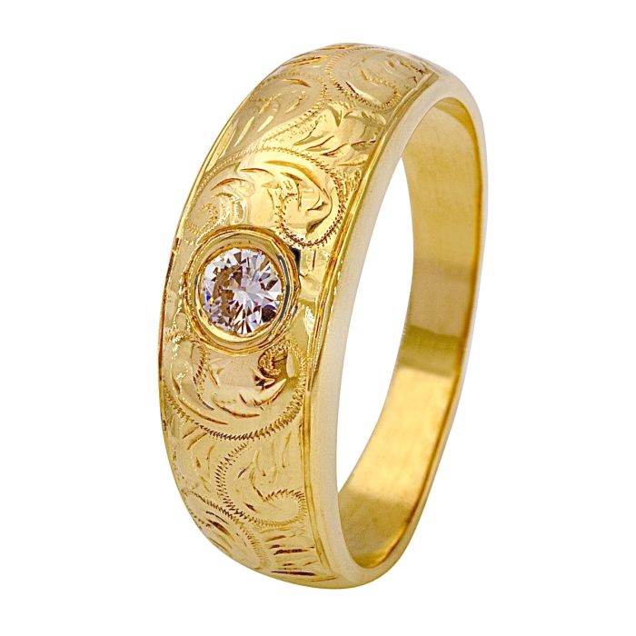 Der Bandring hat schauseitig ein florales ziseliertes Dekor.