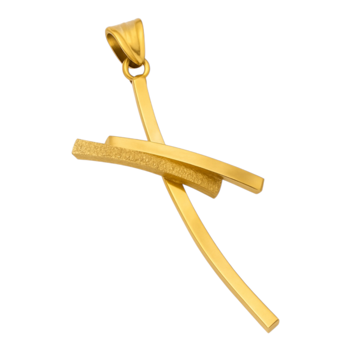 Moderner Kreuzanhänger aus 18 karätigem Gelbgold.