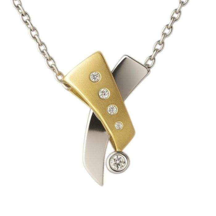 Bicolour Kettenanhänger mit Brillanten und passender Halskette