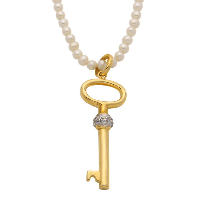 Großer dekorativer Schlüssel mit Zuchtperlen Kette