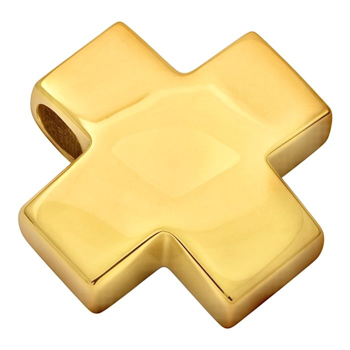 Das Schmuckstück, aus 585er Gelbgold, in moderner Kreuzform hat gleich lange Quer und Längsbalken.
