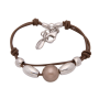 Mittig sitzt eine braune Perle. Diese ist umgeben von verschieden geformten Silberelementen.