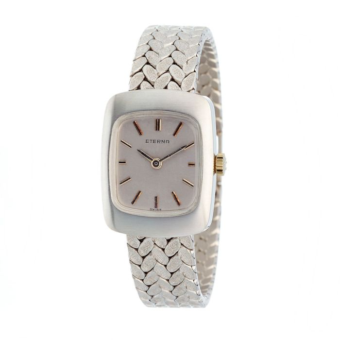 Außergewöhnliche Vintage Damenuhr aus dem Jahr 1963 aus dem Hause Eterna in 18 karätigem Weißgold.