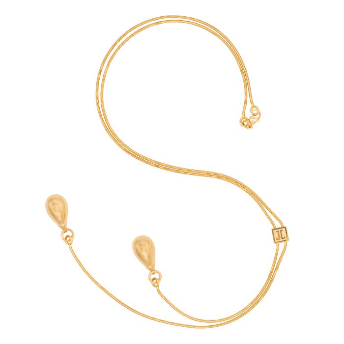 Die schlichte Schlangenkette ist im Verlauf geteilt durch das quadratische Logo „JJ“.